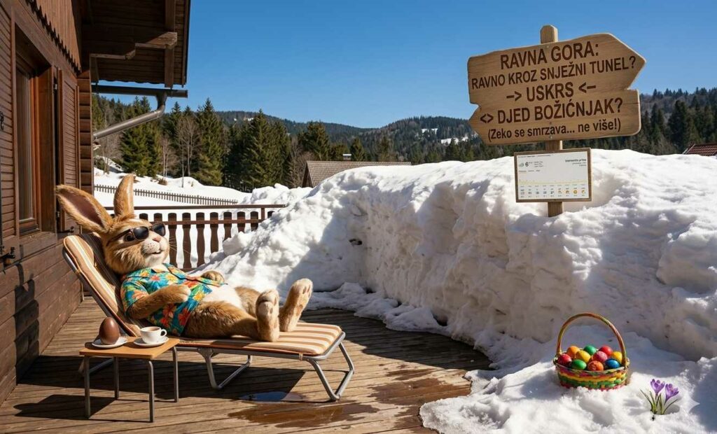 Samo nekoliko dana nakon što smo doslovno probijali snježne tunele do vlastitih ulaznih vrata, kalendar nas uporno podsjeća na – Uskrs. Dok se borimo s nanosima snijega, u Gorskom kotaru vlada opća zbunjenost: nismo sasvim sigurni treba li ove godine bojati jaja ili pripremati skije, a ni tko će nam zapravo pokucati na vrata. Zeko na čekanju, Djedica u niskom startu Situacija na terenu je kritična za našeg uhatog prijatelja. S obzirom na to da … Nastavi čitati Može li zeko preživjeti roller-coaster ili će nam jaja za Uskrs nositi Djed Božićnjak?