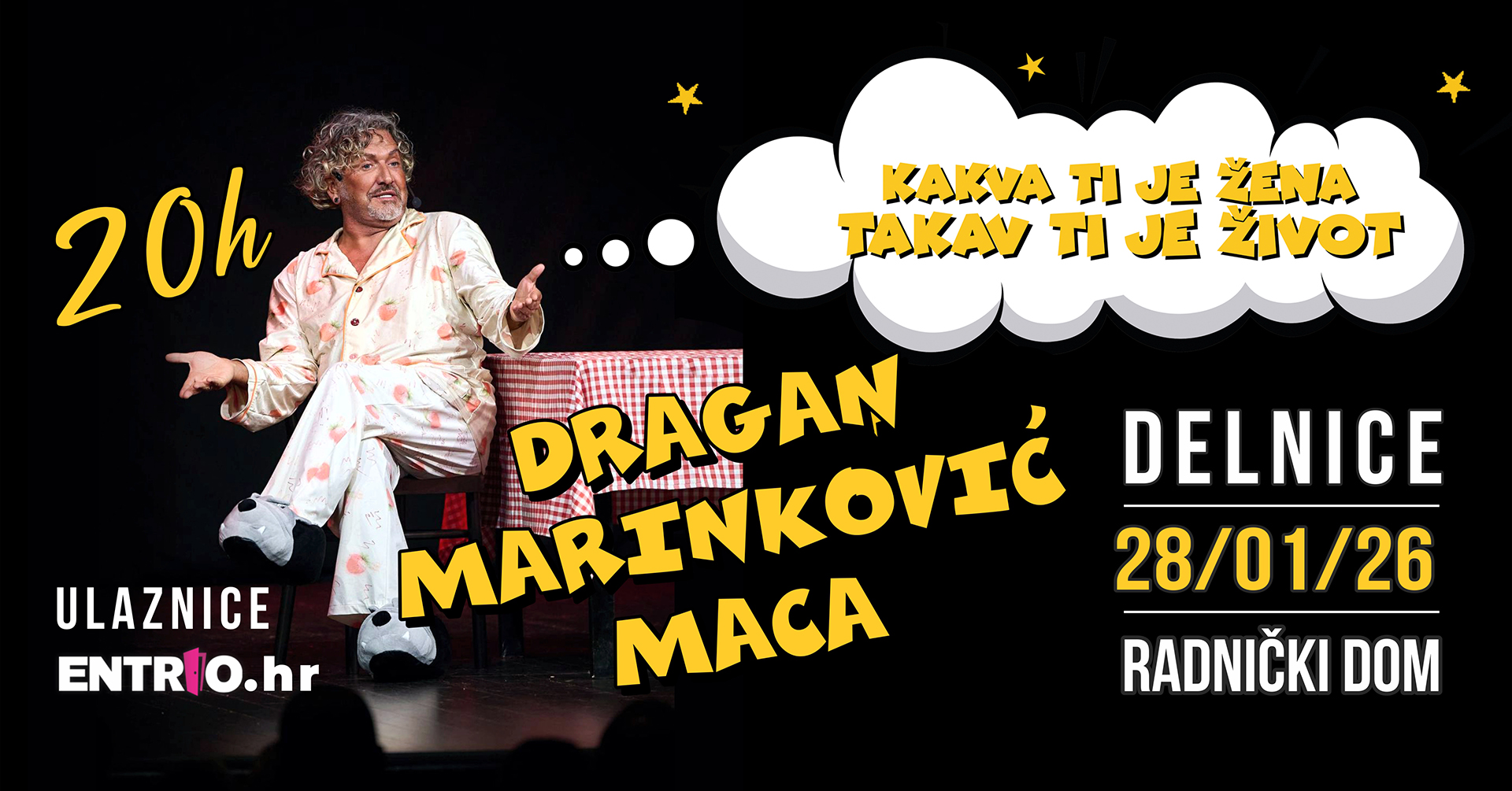 Ne propustite urnebesnu komediju jednog od najpoznatijih glumaca i zabavljača s ovih prostora, Dragana Marinkovića Mace! Predstava Kakva ti je žena, takav ti je život stiže u Delnice 28.01.2026. u Radničkom domu Delnice.